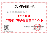 日前,广东省工商行政治理局正式公示了2019年度“广东省守条约重信用企业”名单,尊龙凯时医药依附优异的信誉与左券精神顺遂通过评审,这已是公司一连九年(2011-2019)获得...